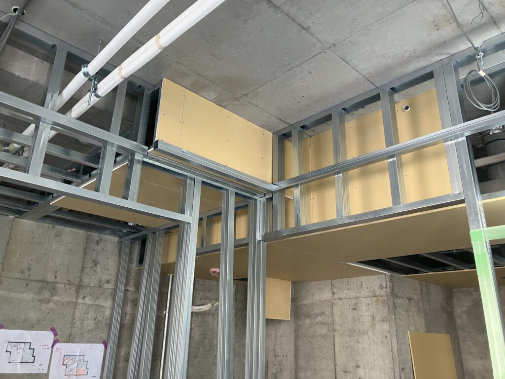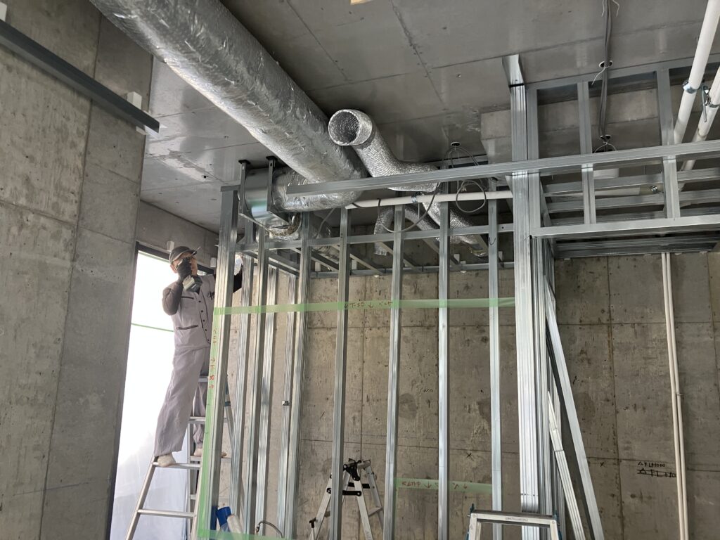 前回の着工から設備関係の事前配線、配管が終わり続々と壁が立ち始め