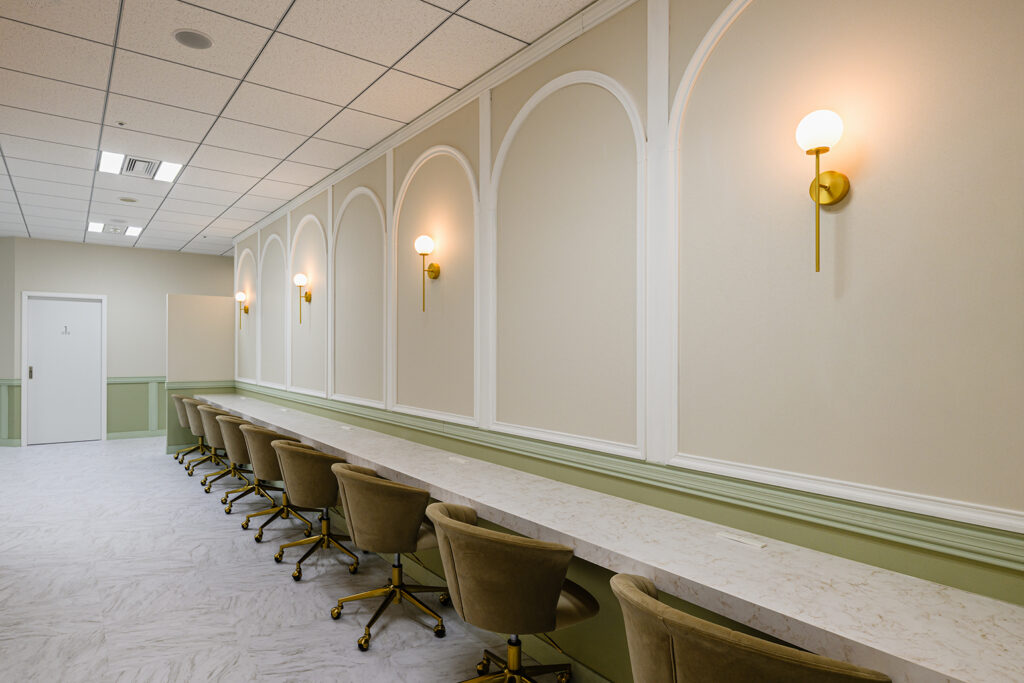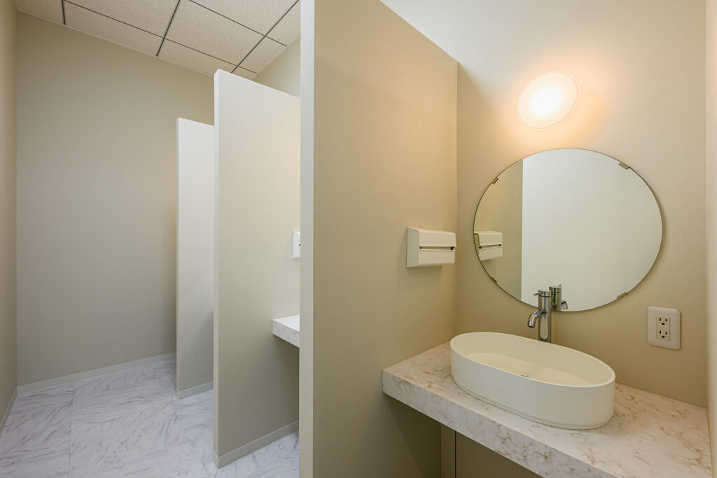 パウダールームも10席あり、