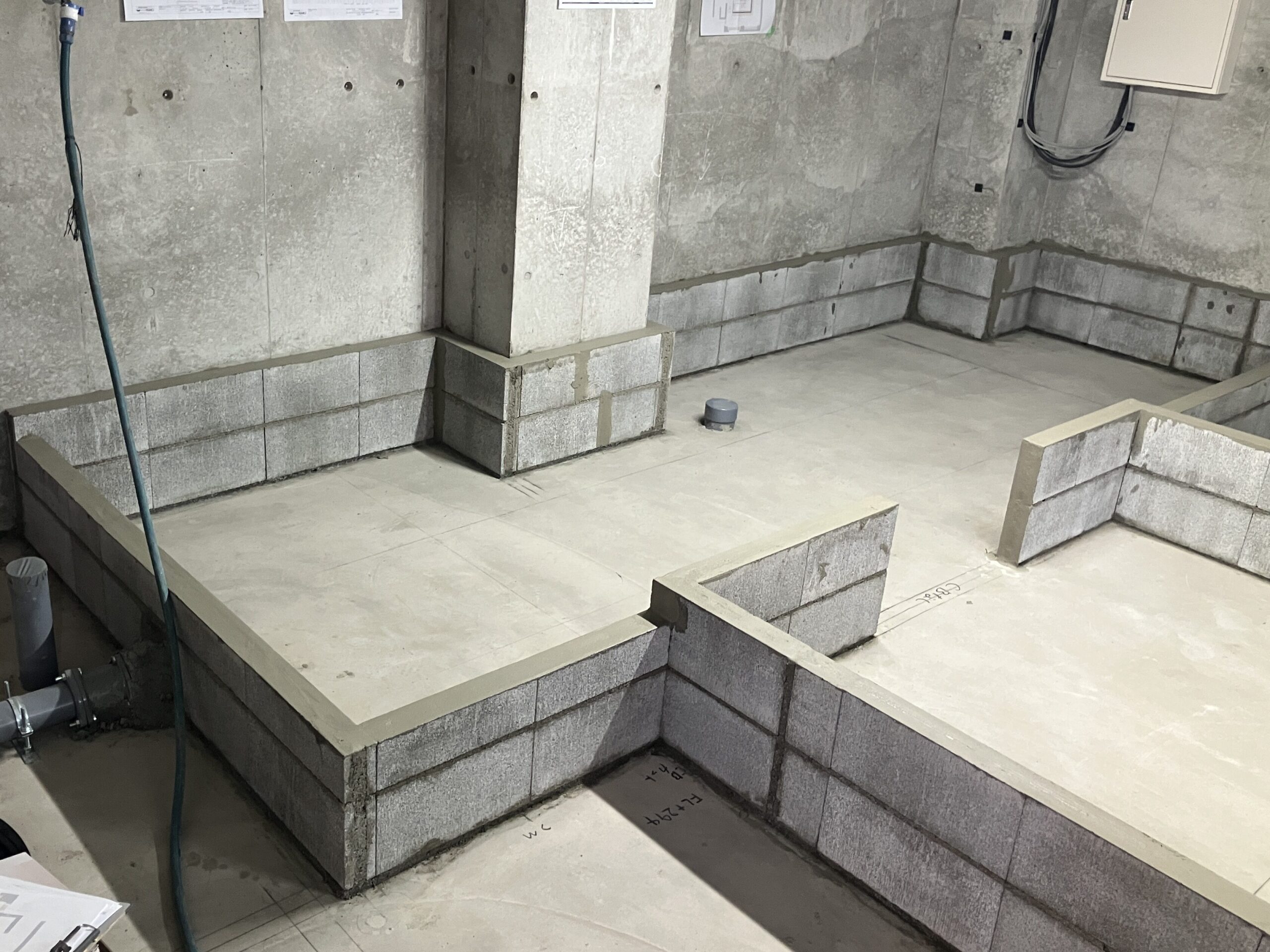 流せる厨房)の土間を造るべく、そのまわりを囲う壁となる