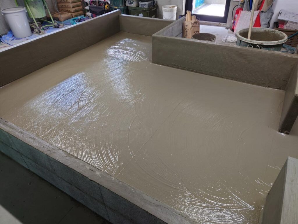 左官、防水塗装両者の職人さんの腕が頼りです。